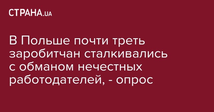 Кроме того, сразу 29,2% украинских работников заявили, что имели в Польше опыт сотрудничества с нечестными работодателями.