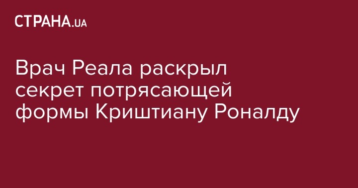 Врач мадридского Реала Хуан Карлос раскрыл секрет потрясающей физической формы Криштиану Роналду (футболисту уже 33 года - Прим.Ред.), который покинул ряды "галактикос" и теперь играет за итальянский Ювентус, правда пока голов не забил.