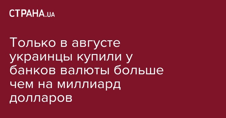Чистая покупка валюты украинцами в августе составила $46 млн, тогда как чистая продажа валюты украинцами в июле уменьшилась до $135,3 млн по сравнению с $268,7 млн в июне, составила $350,6 млн в мае, $234,7 млн в апреле этого года и $193,8 млн в августе прошлого года.