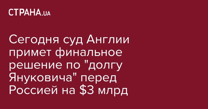 Сегодня, 14 сентября, апелляционный суд Англии и Уэльса должен вынести финальный приговор по апелляции Украины по долгу перед Россией на 3 млрд долларов. Об этом свидетельствует анонс на сайте суда.