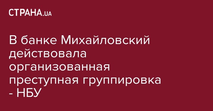 На основании данных, представленных в письме Национального банка Украины (НБУ) правоохранительным органам, можно заключить, что в банке Михайловский действовала организованная преступная группа. Об этом сообщает пресс-служба НБУ.