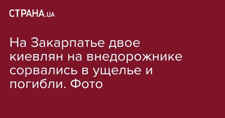 Сегодня утром, 15 сентября, внедорожник с двумя киевлянами сорвался в глубокую расщелину на Закарпатье, оба они погибли. Об этом сообщил губернатор Закарпатской области Геннадий Москаль на своем сайте.