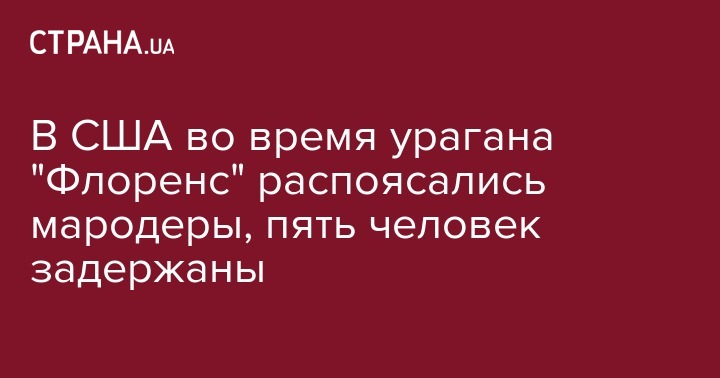 В США полиция задержала пять человек, которые грабили магазин во время тропического шторма "Флоренс". Об этом передает ТАСС.