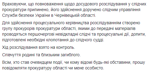 По факту дорожно-транспортного происшествия прокуратура Черновицкой области внесла сведения в Единый реестр досудебных расследований по части 2 статьи 286 Уголовного кодекса.