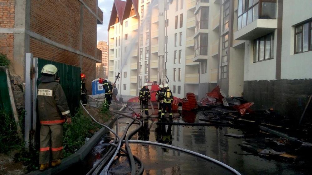 Появились фото и видео, как пожарные сражаются с огнем, который охватил комплекс "Ясногорская" на Сырце в Киеве