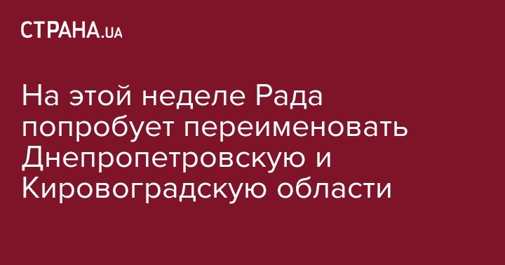 На этой неделе Рада попробует переименовать Днепропетровскую и Кировоградскую области