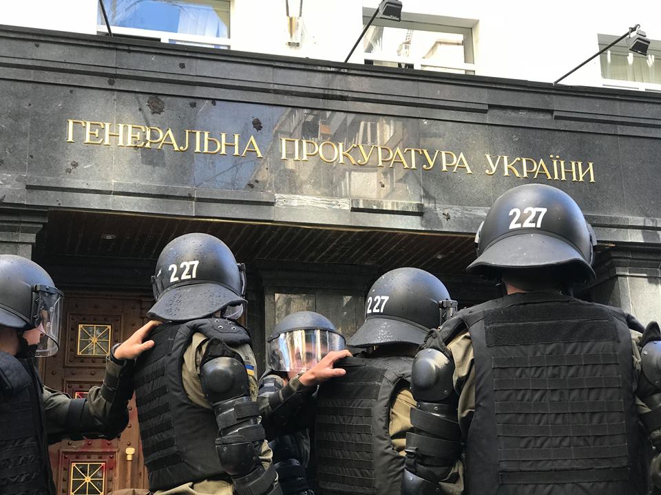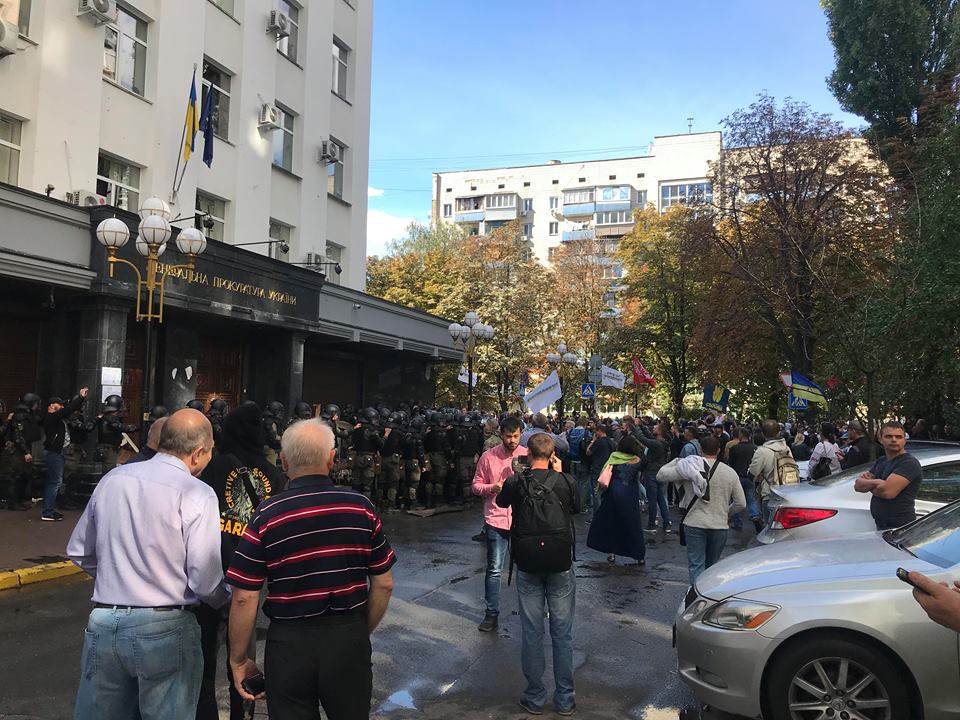 Лидер националистического движения "ОУН" Николай Коханивский, на митинге, переросшем в штурм Генеральной прокуратуры Украины, заявил о "неизбежности революции этой осенью". Также он потребовал насильственных действий в отношении генпрокурора Юрия Луценко. Лидер С14 Евгений Карась выразил уверенность, что "Генпрокуратура работает на Кремль". Всего в акции берут участи Братство Корчинского, Накорпус, C14, "Правый сектор" и добробаты.