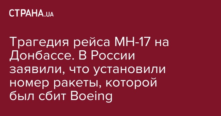 Трагедия рейса МН-17 на Донбассе. В России заявили, что установили номер ракеты, которой был сбит Boeing