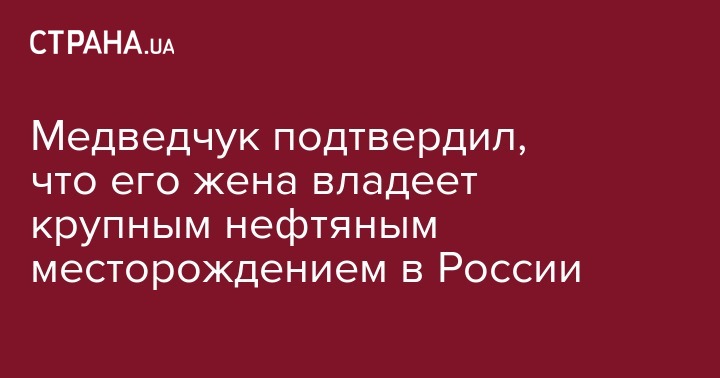 Глава движения "Украинский выбор" Виктор Медведчук подтвердил сообщение СМИ о том, что его жене Оксане Марченко принадлежит нефтяное месторождение в России. Об этом он заявил в эфире NewsOne.