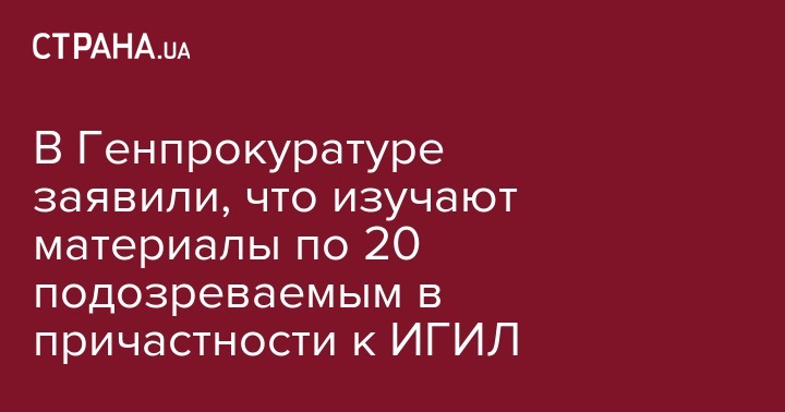 На рассмотрении в ГПУ находятся документы 20 человек, которых подозревают в причастности к террористической группировке "Исламское государство". Об этом сообщил заместитель генерального прокурора Украины Евгений Енин, отвечая на вопрос, сколько людей в списке на экстрадицию связаны с ИГИЛ, передает "Громадське".