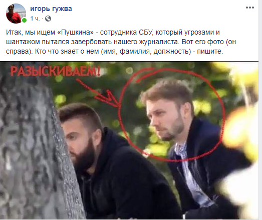 Также Игорь Гужва отметил, что "Страна" разыскивает информацию о сотруднике СБУ (имя, фамилия, должность), который угрозами и шантажом пытался завербовать журналиста.