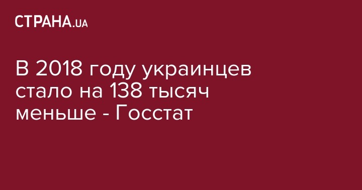 Кроме того, в Госстате напоминают о давней тенденции сокращения количества населения. Например, только за январь - июль 2018 года оно сократилось на 138,3 тыс. человек.
