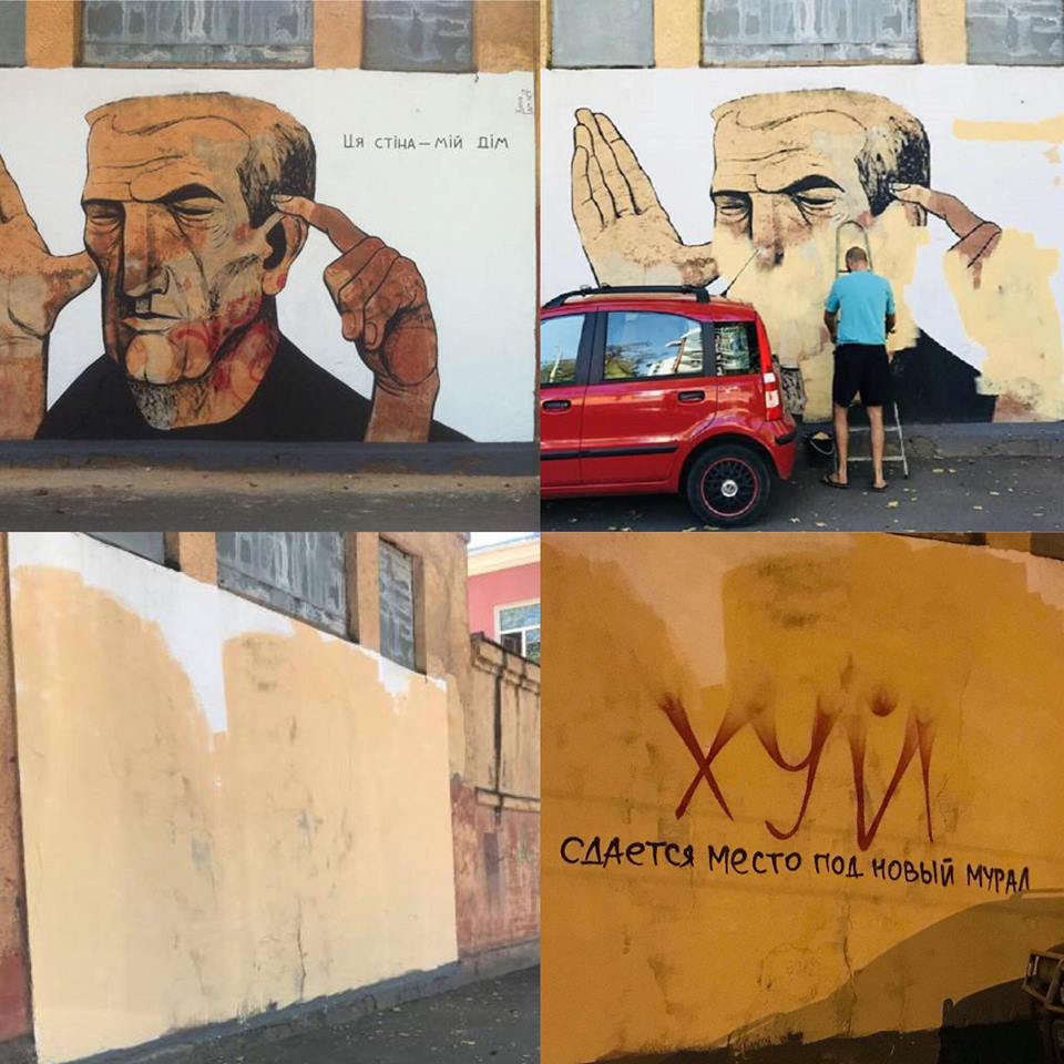 По данным местных журналистов,, на стене по ул.Успенской в Одессе был изображен мужской портрет с надписью "Ця стiна – мiй дiм" авторства харьковского художника Гамлета Зиньковского.