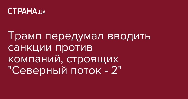 Трамп передумал вводить санкции против компаний, строящих "Северный поток - 2"