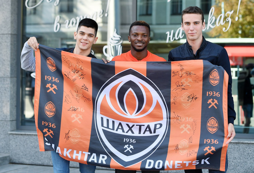 Кроме того, болельщики представили игрокам баннер с эмблемой Шахтера на котором футболисты с удовольствием оставили автографы.