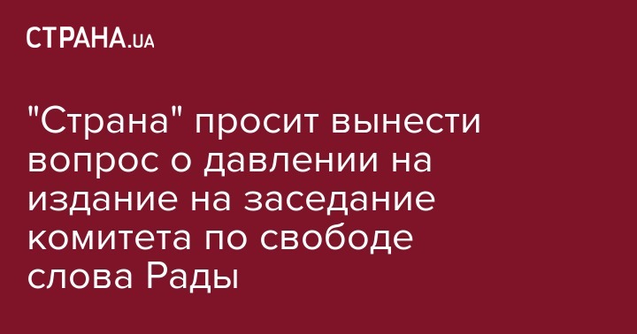 "Страна" просит вынести вопрос о давлении на издание на заседание комитета по свободе слова Рады