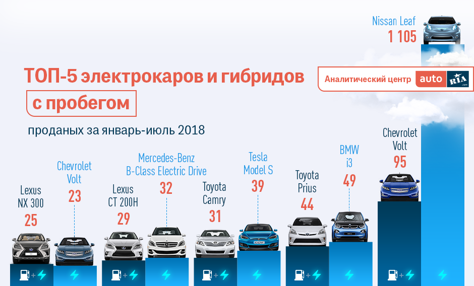 С января по июль 2018 включительно украинцы купили 1 473 электромобиля и 531 гибрид с пробегом. Об этом рассказали UBR.ua аналитики AUTO.RIA. Кстати, примерно столько же сколько "традиционных" автомобилей.