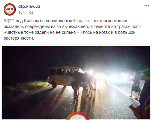 В ночь с 19 на 20 сентября под Киевом случилась авария, причиной которой стал выбежавший на трассу лось. Об этом пишет dtp.kiev.ua на странице в Facebook.