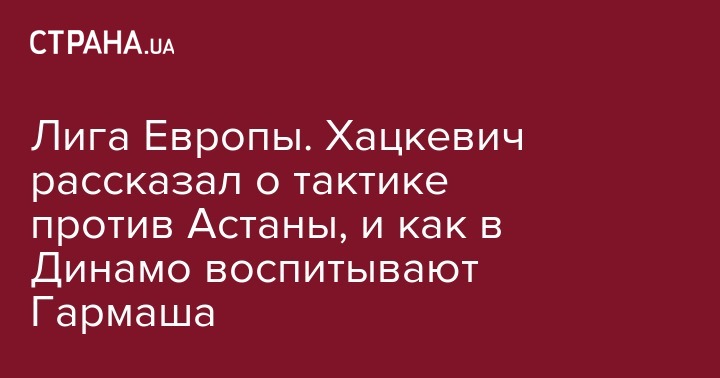 - Вот видите, вы гораздо более проинформированны, чем мы, поскольку показываете в Казахстане наши игры - матчи Астаны в Украине не показывают. Но это шутка, ведь мы также имеем полную информацию о сопернике. Относительно задач, то первоочередная - это выход из группы, ведь это престиж как самого клуба, так и всей страны. Лига Европы - хороший турнир, наверное, для нашей команды оптимальный на данный момент, ведь чтобы играть уровнем выше, нужно быть готовыми. У нас же достаточно молодая команда, в которой выступают воспитанники Академии, но, несмотря на опыт, мы должны выходить из группы.