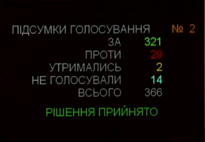 20 сентября депутаты Верховной Рады 321 голосом поддержали отправку в Конституционный суд (КС) президентского законопроекта о внесении изменений в Конституцию в части закрепления стратегического курса Украины на членство в Европейском Союзе и НАТО. Против проголосовало 29 депутатов, воздержались двое.