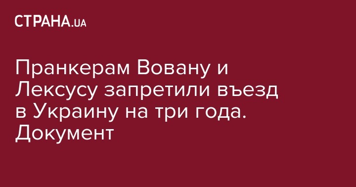 "В июле текущего года принято решение о запрете въезда в Украину гражданину РФ Владимиру Кузнецову (по материалам открытых источников сети Интернет, известному как Владимир Краснов, пранкер "Вован") 1986 года рождения сроком на три года", - говорится в ответе пресс-центра СБУ, сканкопию которого обнародовало издание "Факты" в четверг.