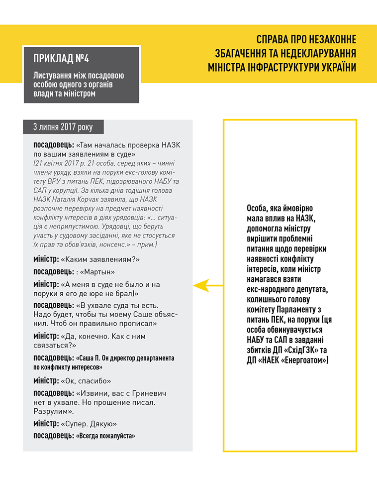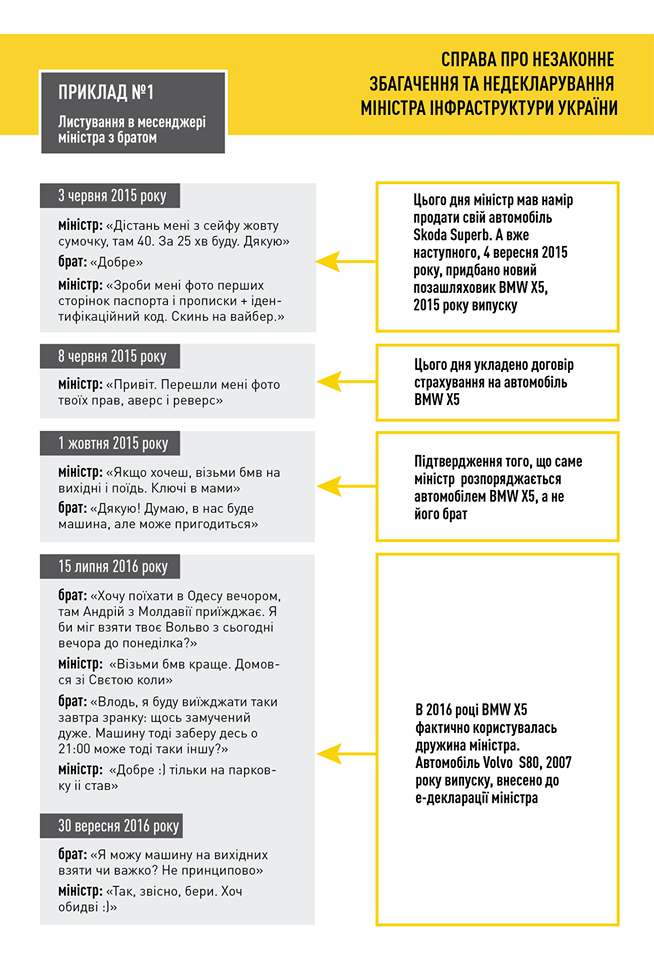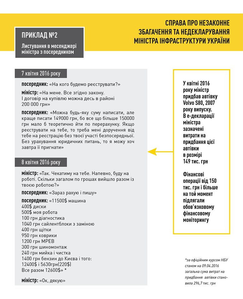 В НАБУ утверждают, что опубликовали переписку Омеляна с его братом, посредником по покупке авто, должностным лицом одного из органов власти и его жены Светланы Бевзы с бывшим владельцем дома в Киевской области. Учитывая это, в НАБУ предполагают, что чиновник сознательно скрывал свое состояние.