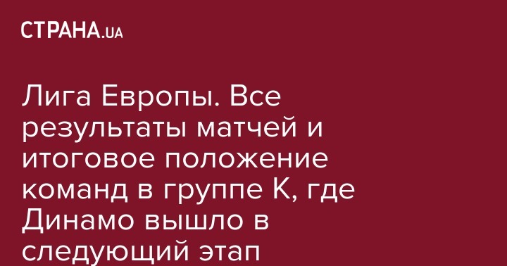 Лига Европы. Все результаты матчей и итоговое положение команд в группе К, где Динамо вышло в следующий этап