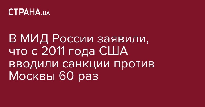 В МИД России заявили, что с 2011 года США вводили санкции против Москвы 60 раз