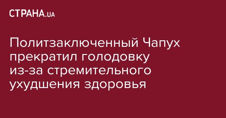 Политзаключенный Чапух прекратил голодовку из-за стремительного ухудшения здоровья