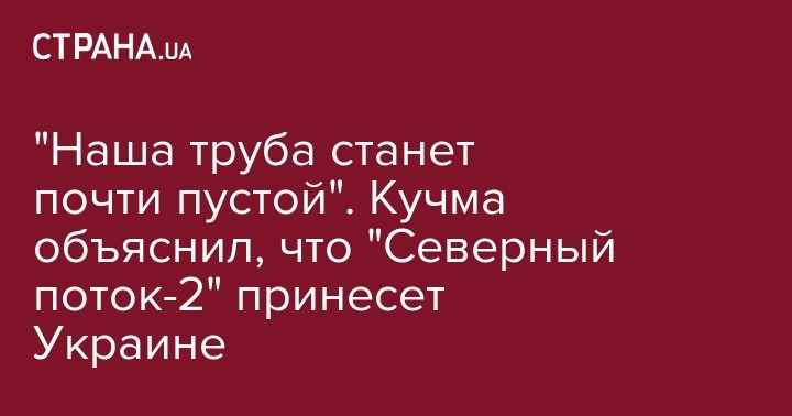 В частности, Леонид Кучма рассказал, что  украинская труба станет почти пустой в случае реализации проекта "Северный поток-2". "Да ничего, если "Северный поток-2", еще там "Турецкий поток", то на Украину ничего не остается – 10-15 млрд куб м", - сказал он.