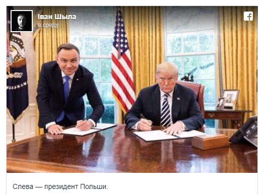 Шило опубликовал фото на своей Facebook-странице с короткой подписью: "Слева - президент Польши". Впоследствии он сообщил, что на следующий день его уволили.