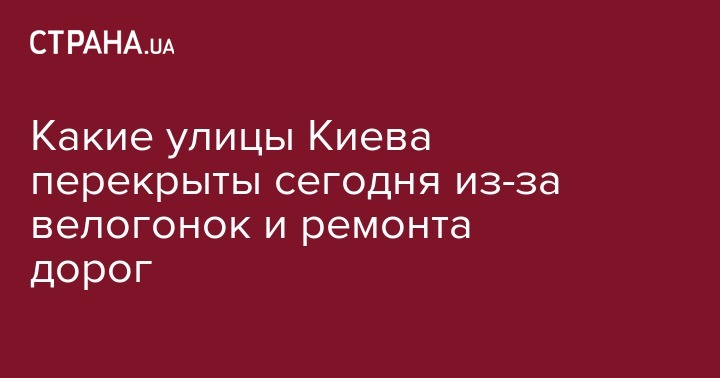 Какие улицы Киева перекрыты сегодня из-за велогонок и ремонта дорог