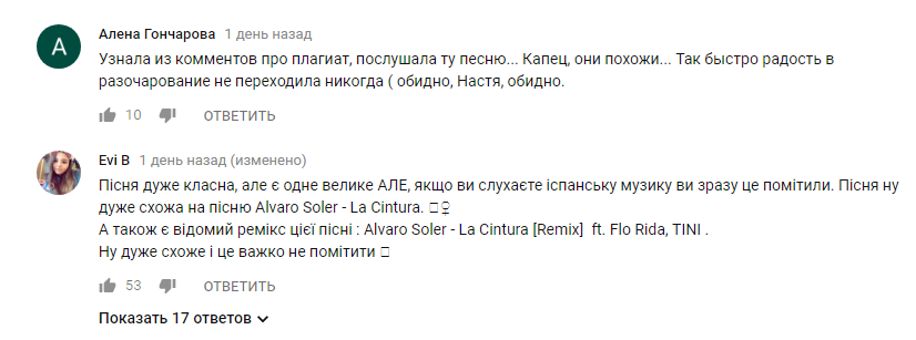 В частности, пользователи сети говорят о невероятном сходстве композиции с песней испанца Alvaro Soler "La Cintura". При этом те, кто сам не заметил признаки плагиата, также говорят о том, что обе композиции очень похожи.