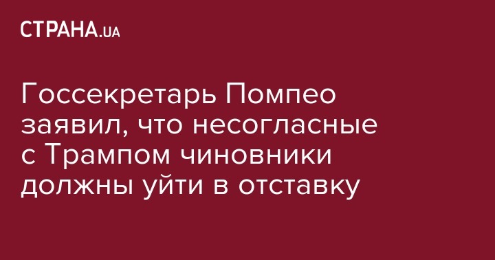 "Если ты не можешь быть в команде, если ты не поддерживаешь эту миссию, то тогда, наверное, тебе стоит заняться чем-то другим. Нам нужно, чтобы все помогали президенту Трампу работе. И я надеюсь, что все в каждом агентстве: Минюсте, ФБР, Государственном департаменте участвуют в этой работе", - сказал Помпео.