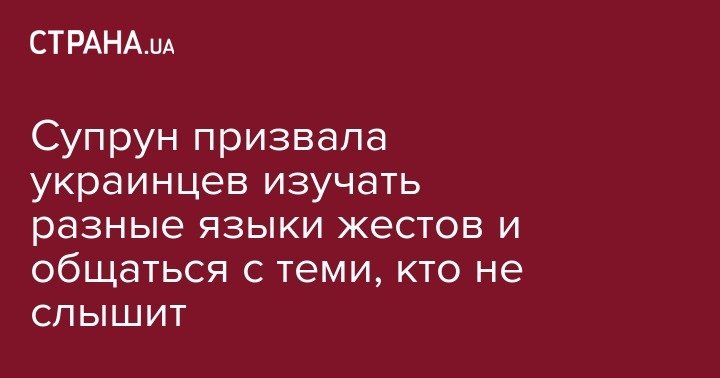 Глава Минздрава Ульяна Супрун призвала украинцев изучать язык жестов, чтобы общаться с людьми с нарушением слуха. Об этом чиновник написала в воскресенье в Facebook.
