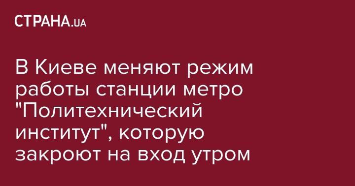 Киевлян и гостей столицы предупредили о смене режима работы станции метро "Политехнический институт". Об этом в Facebook сообщает пресс-служба коммунального предприятии "Киевский метрополитен".