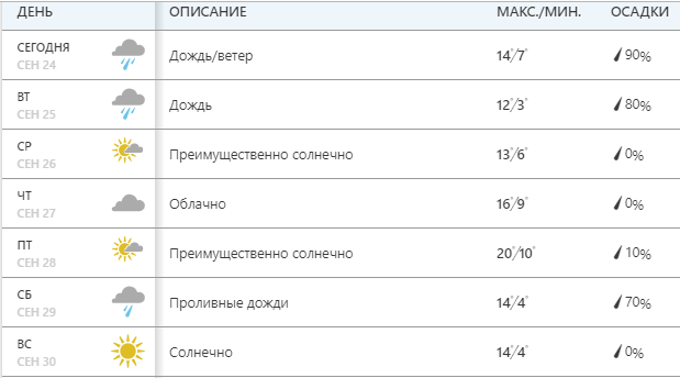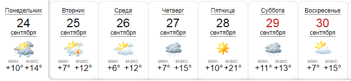"Страна" собрала данные пяти ресурсов, чтобы составить прогноз погоды на неделю с 24 сентября по 1 октября.