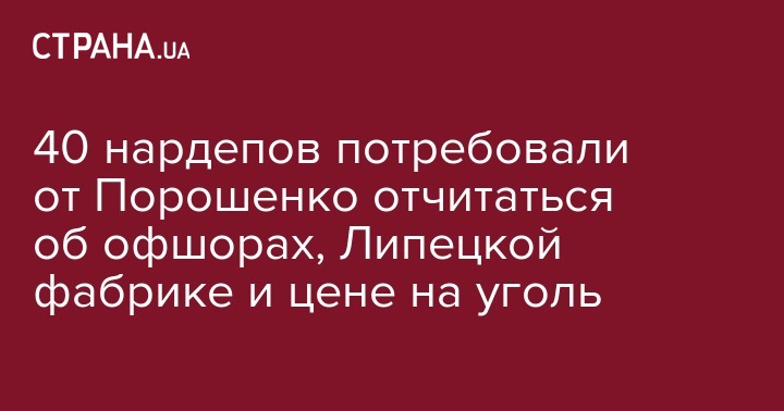 Кроме того, вопросы касаются схемы формирования цены на электроэнергию "Роттердам+", ремонта фрегата "Гетьман Сагайдачный" на "Заводе "Кузня на Рыбальском", функционирования Липецкой кондитерской фабрики в РФ и получения Порошенко от нее прибыли. Нардепов также интересует подтверждение или опровержение информации о подкупе народных депутатов перед голосованиями, в частности по кадровым вопросам – при назначении Юрия Луценко генеральным прокурором, о получении неправомерной выгоды за регистрацию кандидатом в народные депутаты Александра Онищенко.