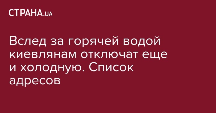 Вслед за горячей водой киевлянам отключат еще и холодную. Список адресов