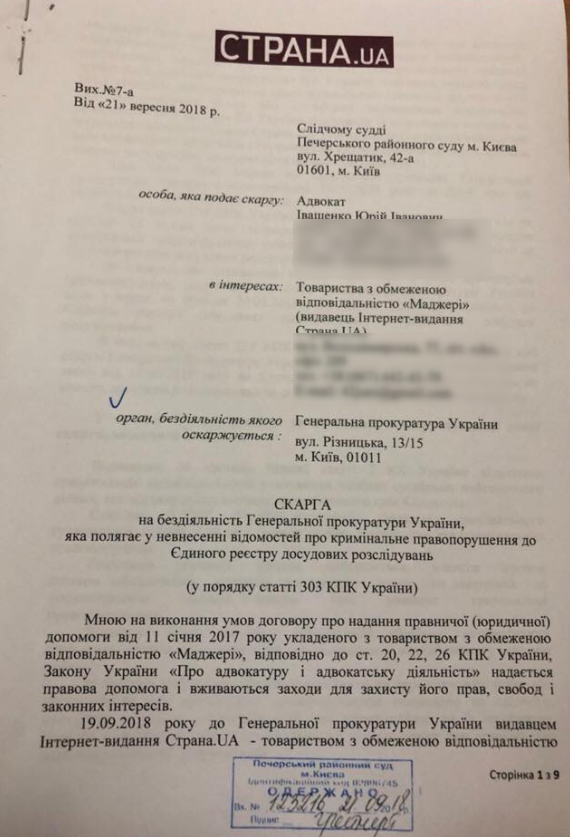 "Страна" будет через суд добиваться открытия уголовного дела против СБУ
