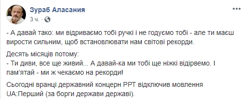 Частично об это упоминает и глава телерадиокомпании Зураб Аласания, который и сообщил об отключении.
