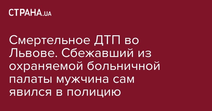 22-летний житель Львова, устроивший в городе смертельное ДТП и впоследствии сбежавший из охраняемой палаты львовской больницы, сам пришел в полицию. Об этом сообщает "Интерфакс-Украина".