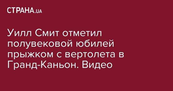 Звезда Голливуда совершил банджи-прыжок в ущелье Гранд-Каньона. Речь идет о разновидности "тарзанки": Уилл Смит выпал в пропасть с вертолета на скорости до 120 км/ч. На земле за этим шоу наблюдали родственники и друзья актера.