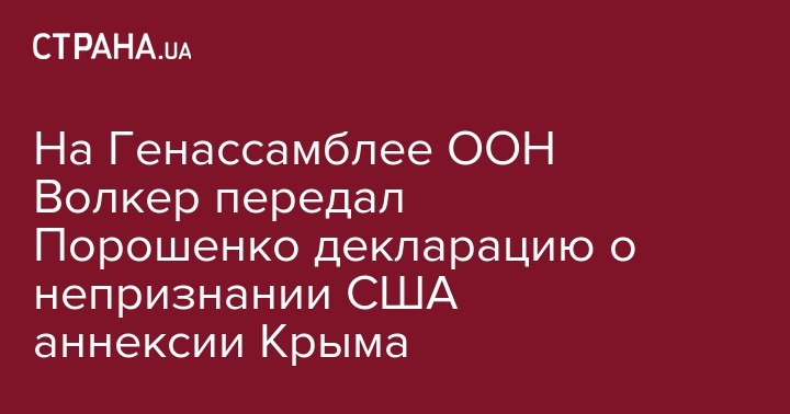В Нью - Йорке, на 73 сессии Генеральной Ассамблеи ООН, прошла встреча президента Украины Петра Порошенко и спецпредставителя США по Украине Курта Волкера. Во время встречи Волкер вручил Порошенко символическую печатную копию декларации государственного секретаря США Майка Помпео от 25 июля 2018 года, в которой четко и недвусмысленно зафиксирована позиция Соединенных Штатов Америки относительно непризнания незаконной аннексии Российской Федерацией украинского Крыма.