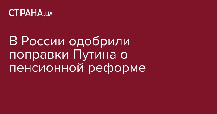 Депутаты Госдумы России во втором чтении единогласно поддержали предложения президента Владимира Путина  относительно пенсионной реформы. В частности, поправки предусматривают снижение пенсионного возраста женщин до 60 лет, а для мужчин возраст выхода на пенсию остался прежним - 65 лет. Об этом сообщается на сайте нижней палаты парламента.