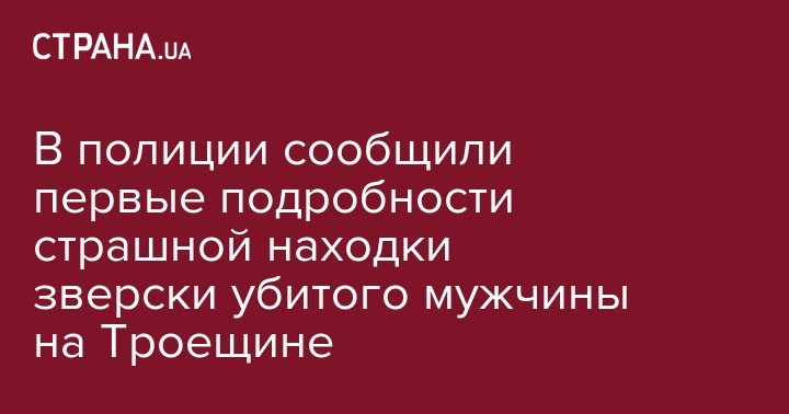 В полиции рассказали подробности о найденном изуродованном трупе на Троещине.  Некоторые подробности убийства, озвученные в местных изданиях, оказались неправдивыми. Об этом сообщила заместитель пресс-секретаря Главного управления Национальной полиции в Киеве Яна Неруш, пишет "Информатор".