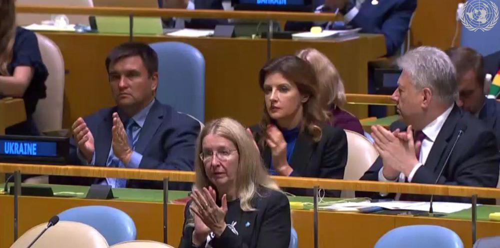 Порошенко поддерживали в зале его жена Марина Порошенко, глава МИД Павел Климкин и и.о. главы минздрава Украины Ульяна Супрун.