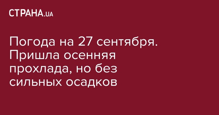 Сегодня, 27 сентября, в Украине ожидается прохладная, малооблачная погода без существенных дневных осадков. Об этом говорится в прогнозе Украинского гидрометеоцентра.