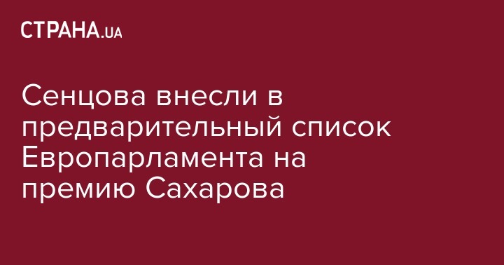 Украинский режиссер Олег Сенцов, который осужден в России по обвинению в терроризме и отбывает 20-летнее заключение в российской колонии, вошел в предварительный список кандидатов на премию Европейского парламента им. Сахарова "За свободу мысли" за 2018 год. Об этом сообщает "Интерфакс Украина".