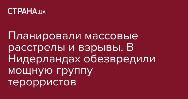 Спецслужбы Нидерландов объявили о ликвидации крупной террористической группы и предотвращении массовых терактов в стране. Задержаны семеро подозреваемых, которые планировали массовый расстрел на одном из шоу, а в качестве отвлекающего маневра хотели устроить взрывы автомобилей.